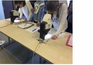 L’atelier a démarré à la rentrée 2017 et les élèves qui ont choisi d’y participer travaillent sur la démarche scientifique autour du point d’eau présent au collège. Ils ont commencé par rechercher des moyens pour faire des prélèvements sans porter atteinte aux éléments présents dans le bassin, puis ils ont fait des prélèvements/observations (œil nu et microscope) et différents tests physico-chimiques.